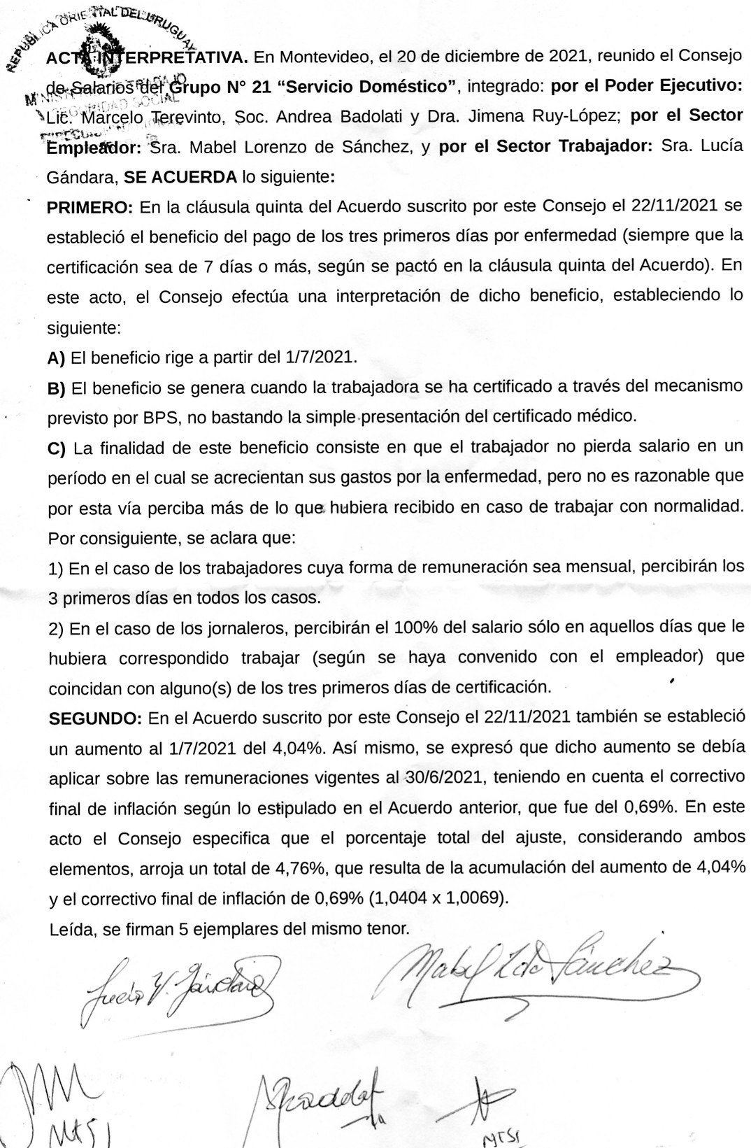Acta aclaratoria sobre el pago de los días de licencia médica y pago del nuevo aumento