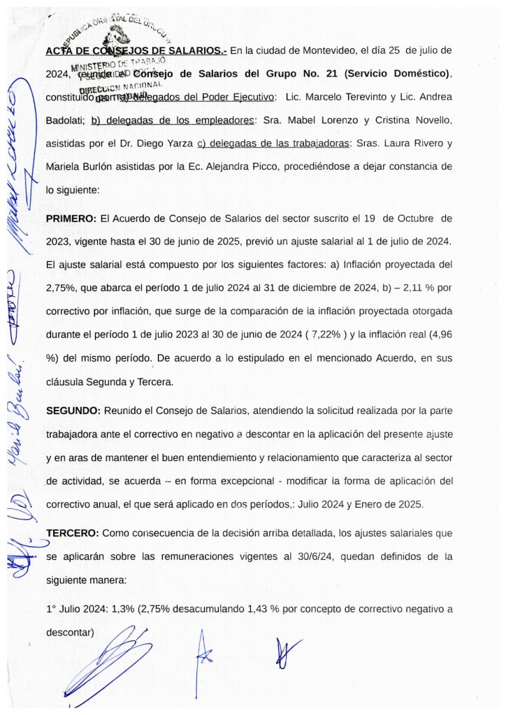 Aumento Salarial al 1° de julio de 2024 y 1° de enero 2025 Grupo 21 Servicio Doméstico