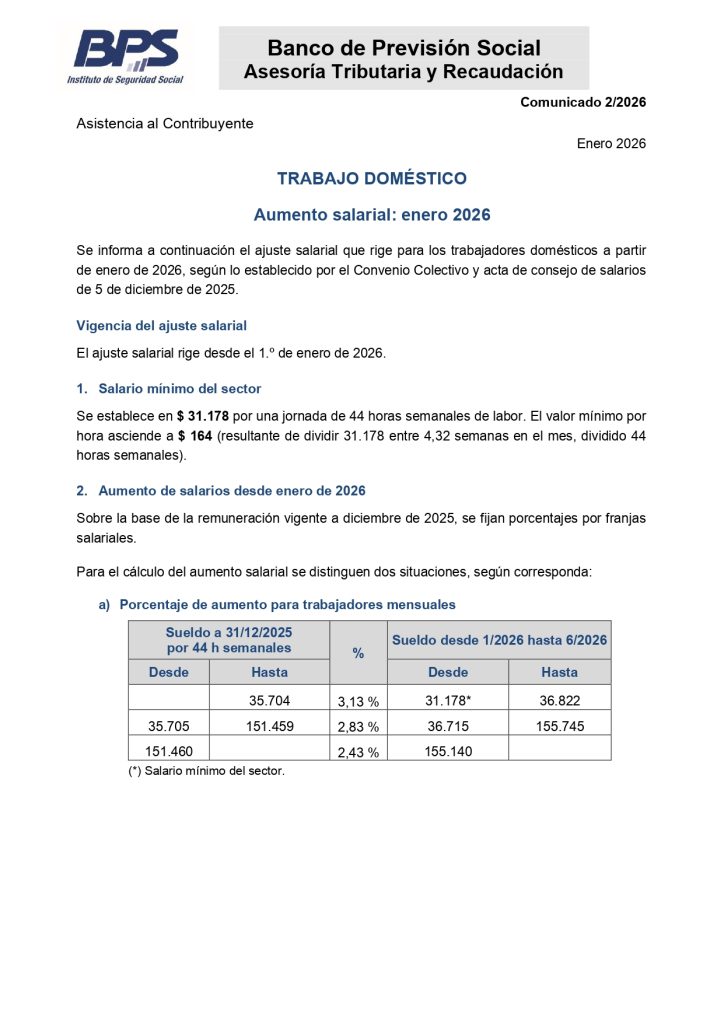 Como usted no nos aclara si es mensual o jornalera (dependerá de como la anotó en BPS) le daremos las dos opciones, debemos aclarar que hay personal que realiza las tareas una vez a la semana y es mensual.