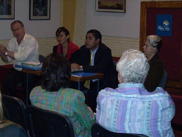 El 16 de diciembre de 2011, en el marco del proyecto de OIT de difusión al interior del país, esta vez nos dirigimos al Departamento de Maldonado y en el salón de actos de la Liga de Punta del Este se concretó una interesante reunión con la asistencia de un público ávido por preguntar. Se constituyó un panel del que formaron parte la Dra. Ana Santestevan representando la OIT, la Sra. Mabel Lorenzo de Sánchez por LACCU, el Dr. Hugo Barone responsable del Consultorio Jurídico Laboral que funciona en la Liga y la participación del Maestro Sr. Ernesto Murro, Presidente del BPS.