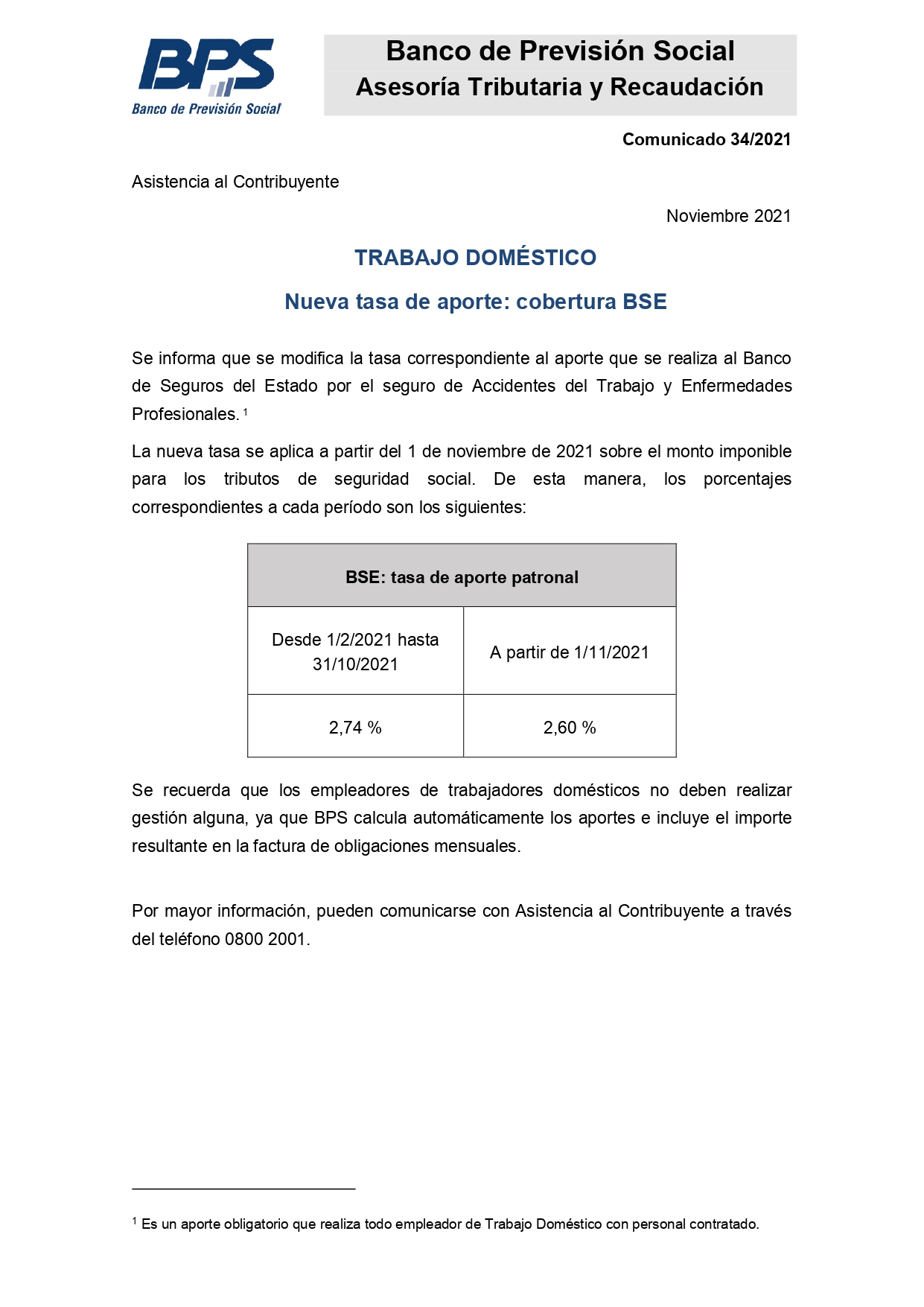 A continuación ponemos a disposición el comunicado de BPS anunciando la baja de la alícuota del seguros por accidentes de trabajo.