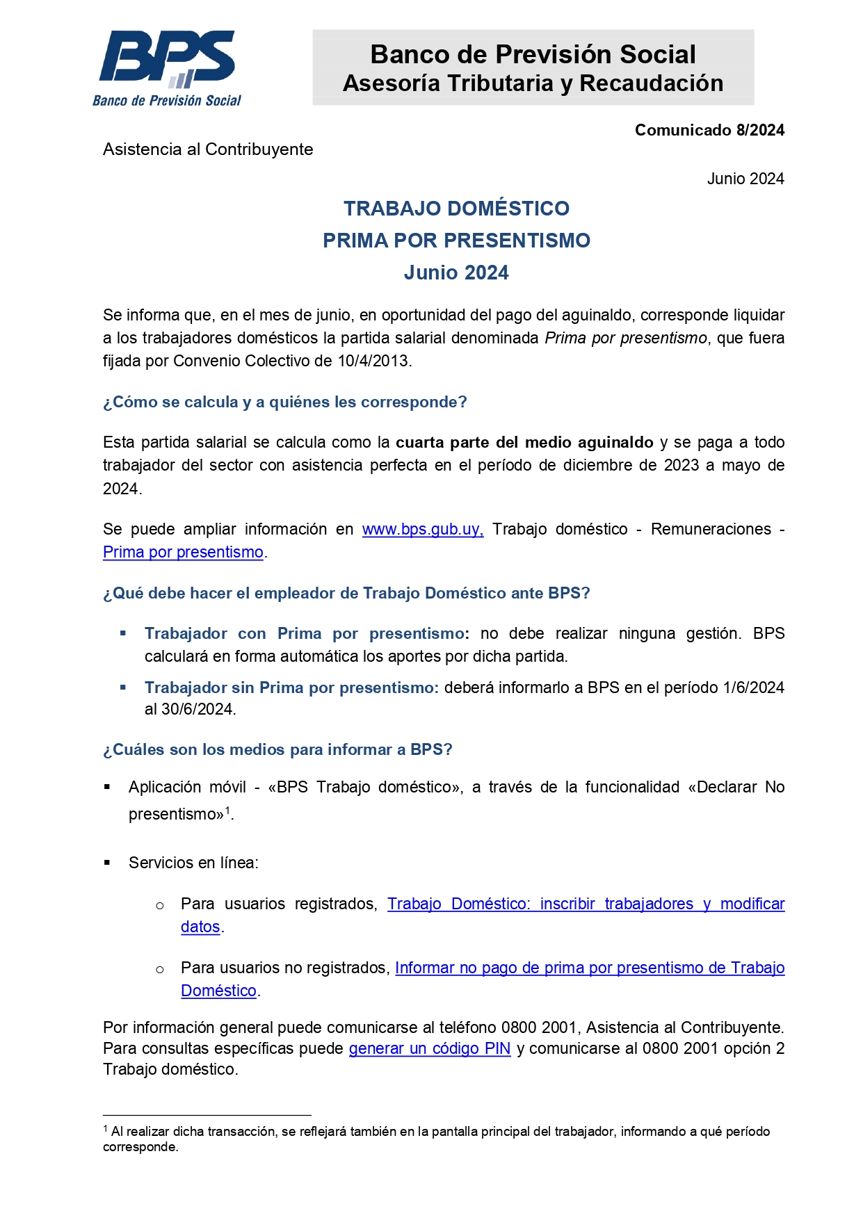 Quería consultarles si corresponde el pago de la Prima por Presentismo en el caso de una empleada doméstica que renuncia. Es decir, cuando le liquido el aguinaldo generado desde el 01/06/24 hasta la fecha del egreso, ¿debo calcularle también el 25% sobre ese monto por concepto de presentismo?