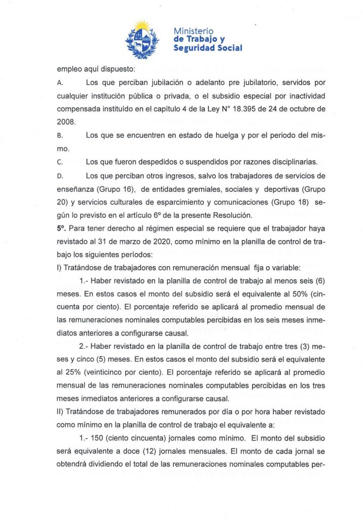 – Trabajadores mensuales: haber tenido una relación laboral mínima de 6 meses (180 días) registrada en BPS en los últimos 12 meses.
