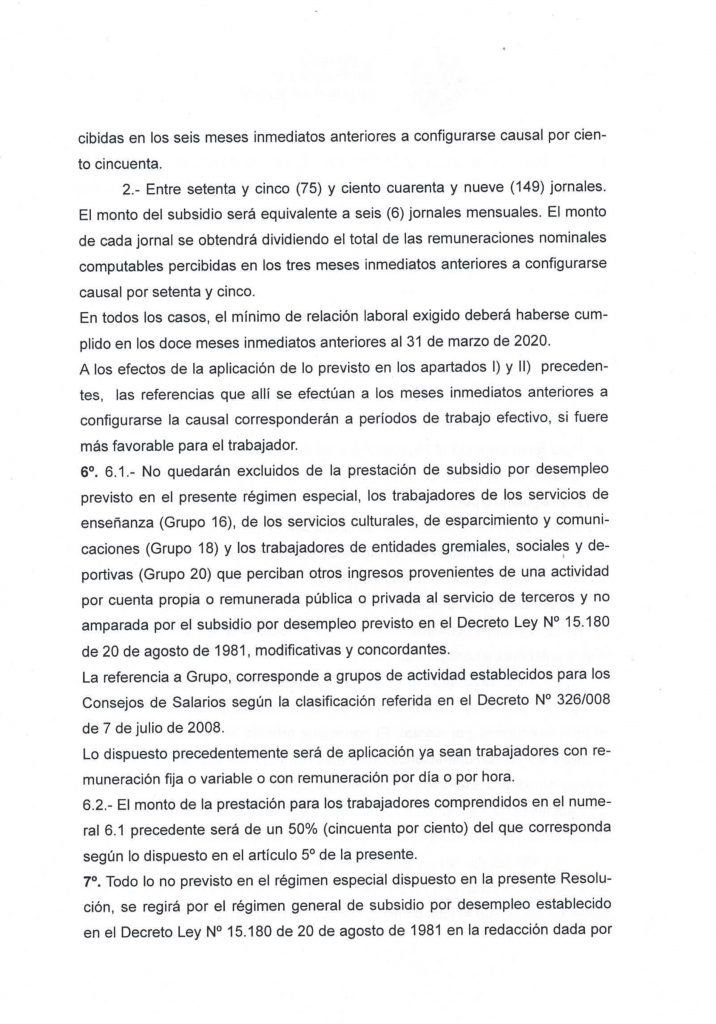 – Trabajadores por día o por hora: una relación laboral mínima de 180 días registrada en BPS en los últimos 12 meses y 150 jornales efectivamente trabajados o, en su defecto, 360 días en planilla y 250 jornales en los últimos 24 meses.