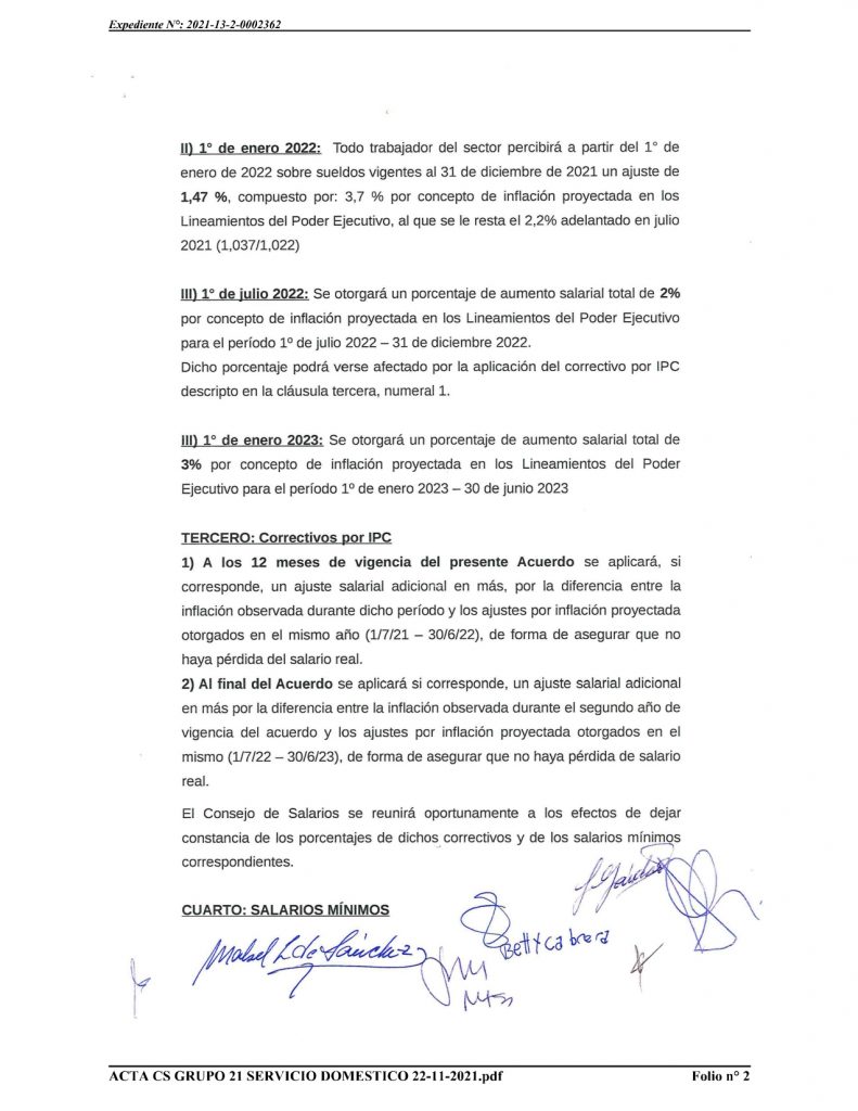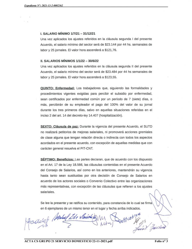 Se informa el ajuste salarial estipulado para los trabajadores domésticos a partir de julio de 2021, según lo establecido por el Convenio Colectivo de 22/11/2021, se determina que: